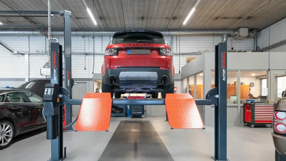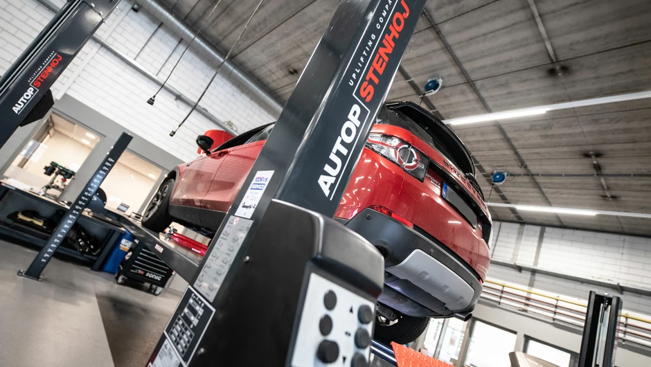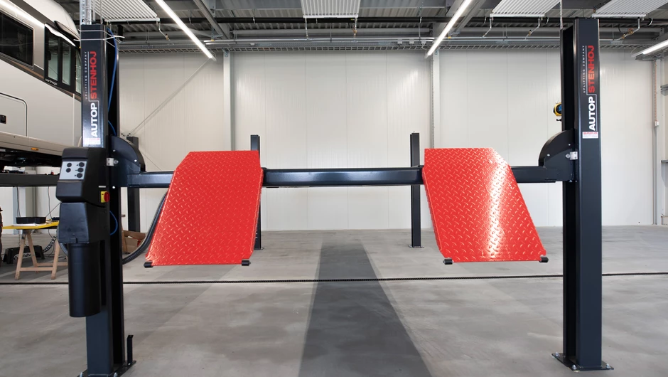 ALL AUTOPSTENHOJ four post lifts are led through a sling purifying plant (according to SA2.50 – ISO-Norm 8501-1:2007), dipped in primer and finally led through an electrostatic powder bake plant.