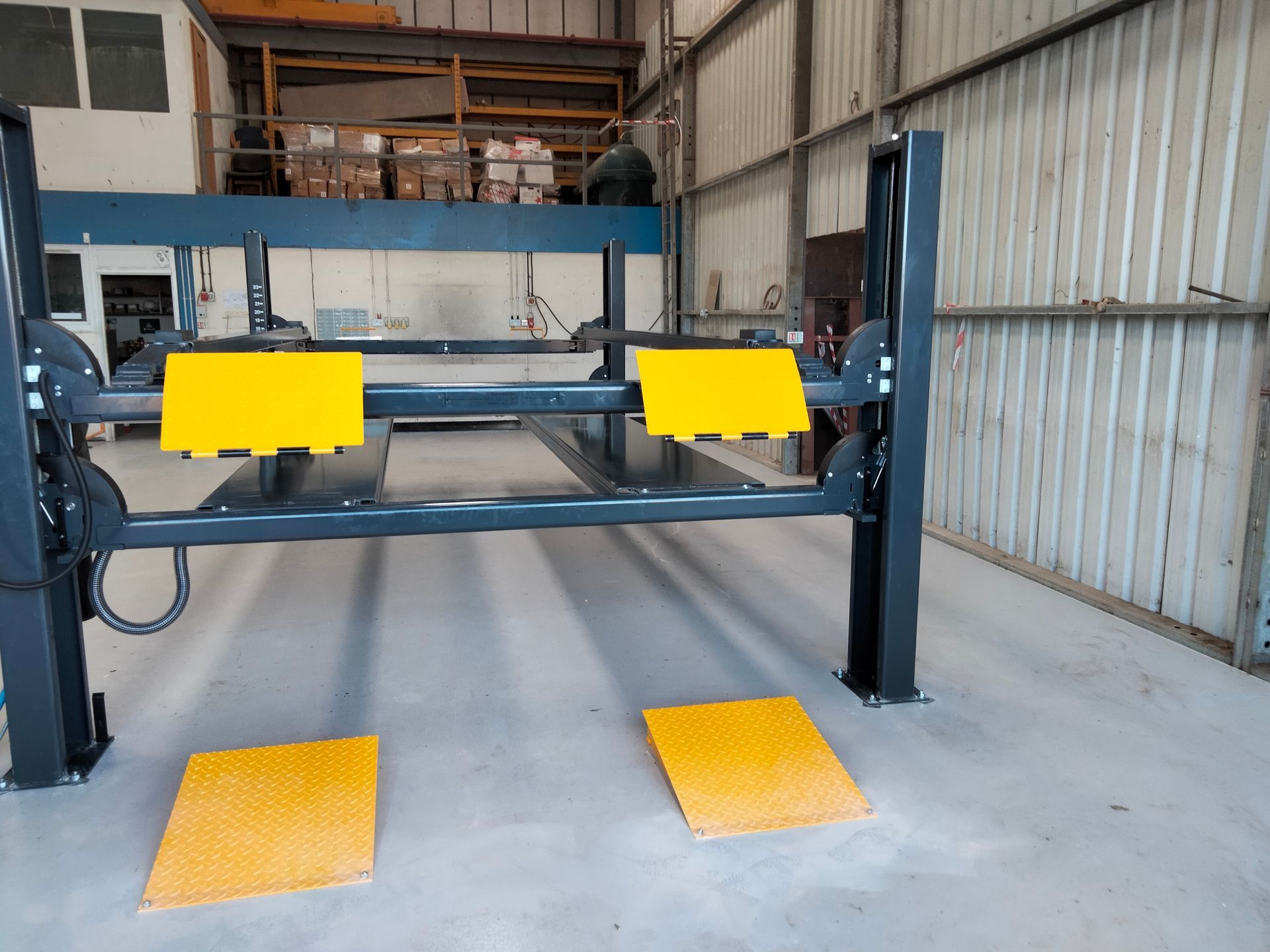 The Bradbury H4443 Wheel Free Four Post Service Lift (4.0 tonne) is one of a kind and is highly versatile! This patented product, which has been around for decades, is almost like having two lifts in one. The wheel free beams, which slide laterally along the cross beam to jack the vehicle up, lift in conjunction with the platforms which can then be lowered whilst the vehicle remains in place in the air on these wheel free beams! The specially designed vehicle parking system is fully automatic and managed entirely by the control box.